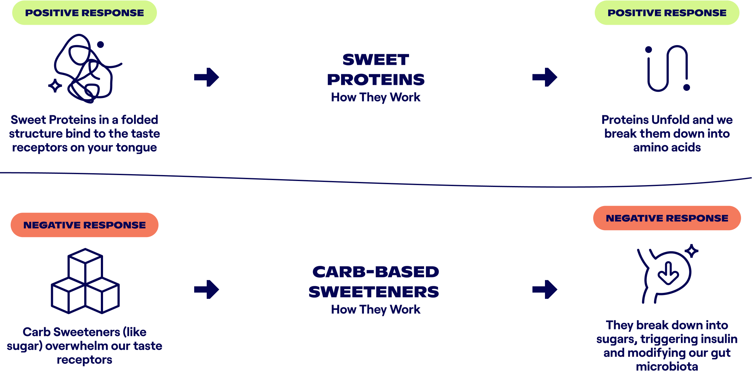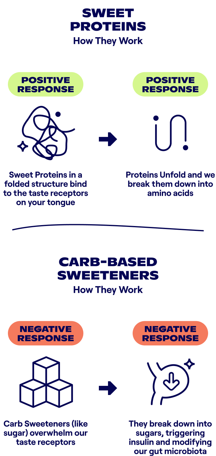 A handful of known proteins taste sweet. We can use these sweet proteins as a groundbreaking new way to create better, healthier sweet foods. Functional sweetness from protein is a sweet revolution.