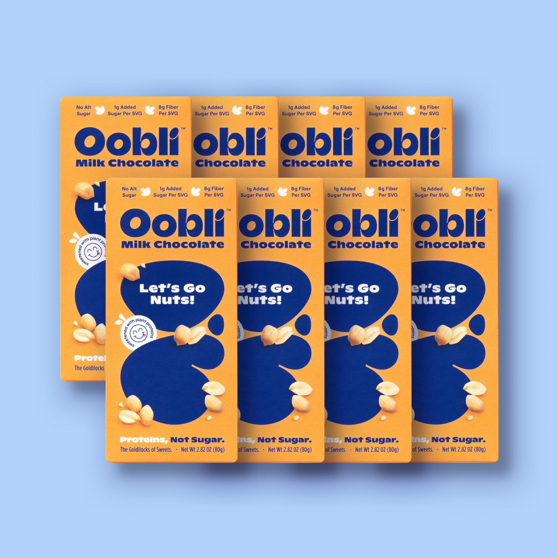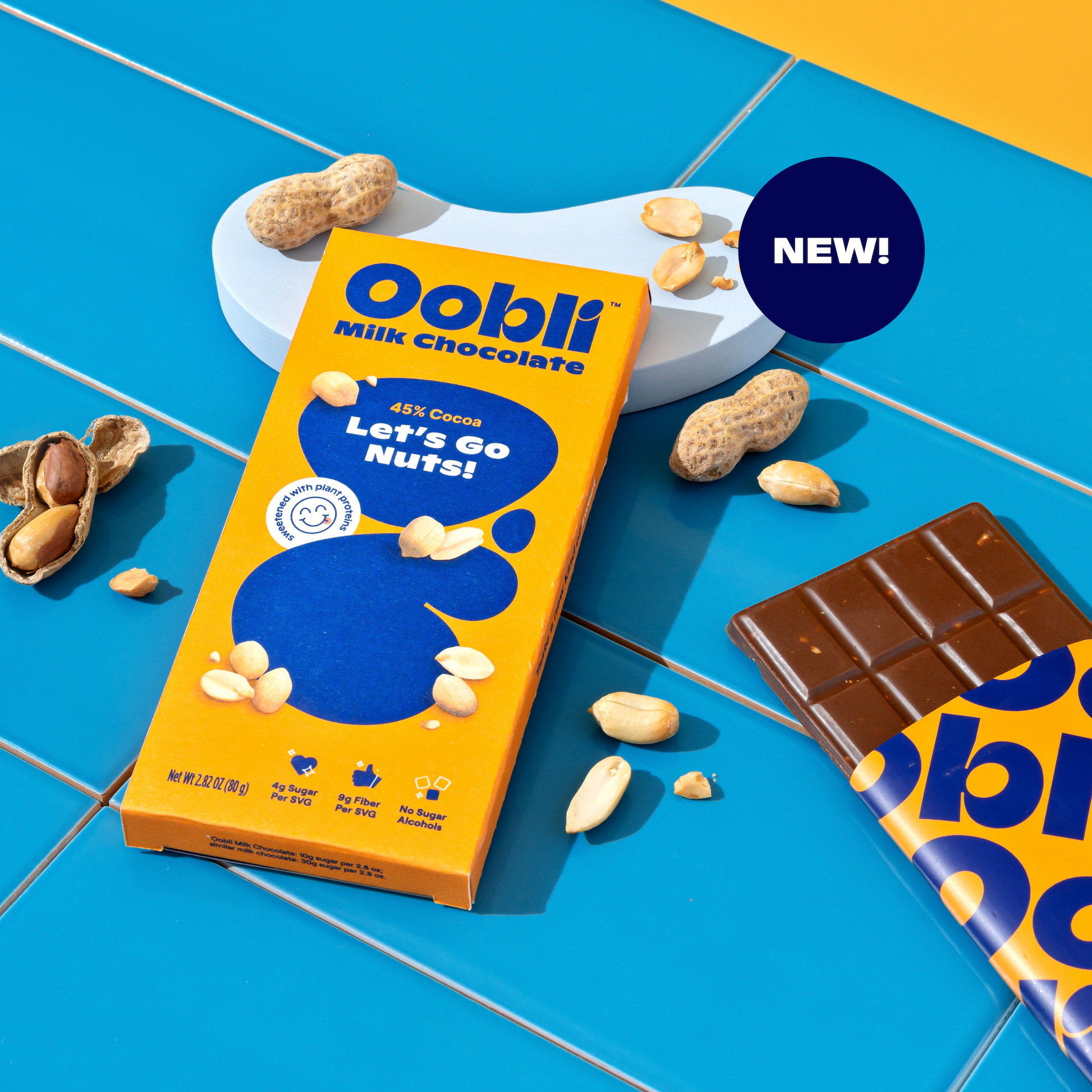 - Delicious, creamy milk chocolate and roasted peanuts sweetened with groundbreaking Oobli sweet proteins