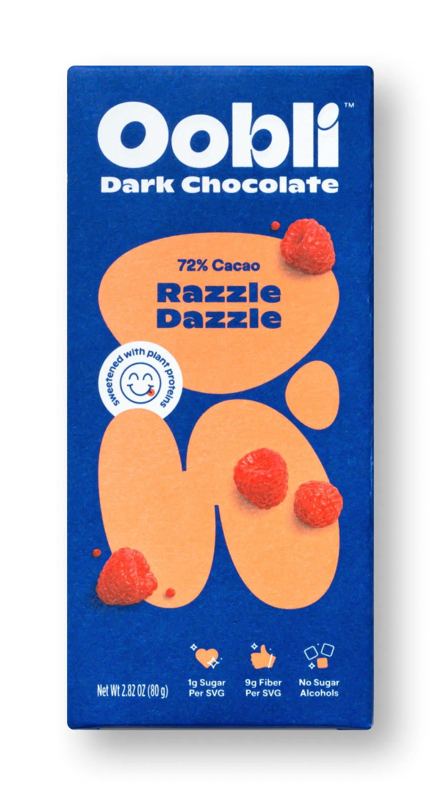 Oobli chocolate is made with a tiny amount of sweet protein that replaces most of the sugar. Sweet proteins don't affect blood sugar, insulin or the gut microbiome, making them a healthy alternative to sweeteners like aspartame, sucralose, stevia and erythritol. High in fiber and keto friendly.